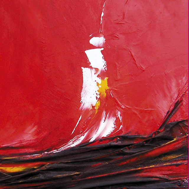 Huile sur papier marouflé sur toile, montée sur châssis - Effet papier froissé et vagues (noires) en relief - Quelques rehauts à la feuille d’or - Format 81 x 65 cm